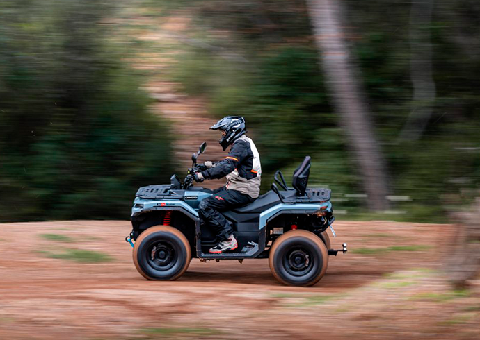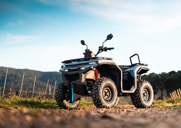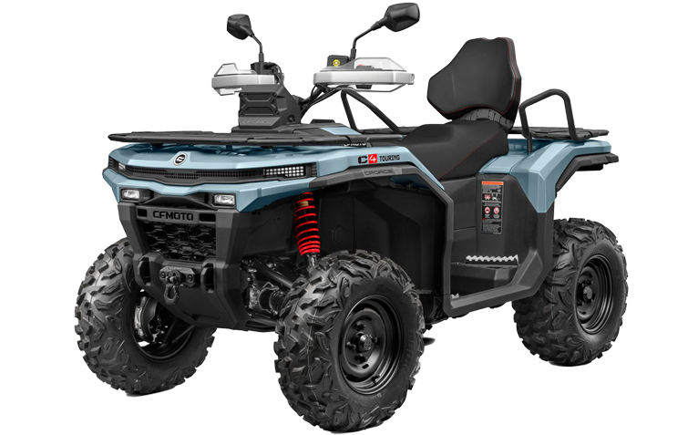 CFORCE 450 TOURING, es una cuatrimoto 4x4 mas larga con chasis para 2 personas, con un respaldar, estable y que ofrece un punto de entrada versátil al mundo de la marca, proporcionando el equilibrio perfecto entre precio asequible y funcionalidad, confort para 2 personas, es automática y fácil de conducir.